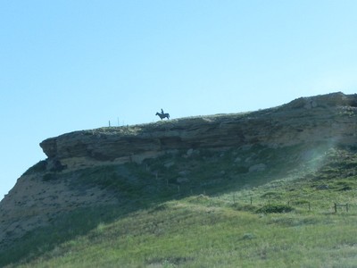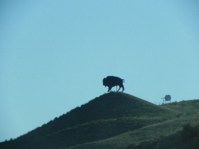 In Wyoming… they think it’s fun to put large silhouettes of animals on tops of hills. These two I get… buffalo and cowboy on his horse.