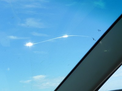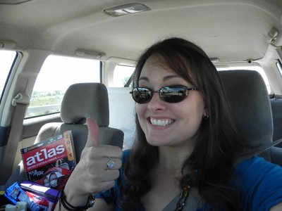 The crack in my windshield… which I am sure was caused by a rock, but it sounded like a bug. (Those of you familiar with travel-by-car, know the difference.) I think the possibility of windshield-cracking bugs is a more exciting concept. Even better…. I got to watch the crack grow to be this size. It happened pretty instantly. (UPDATE.. it is only about another inch longer from when this was taken… I’ll have to post a new picture at the end of the trip to show it’s growth.)