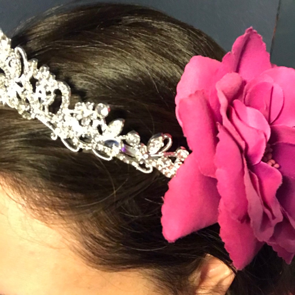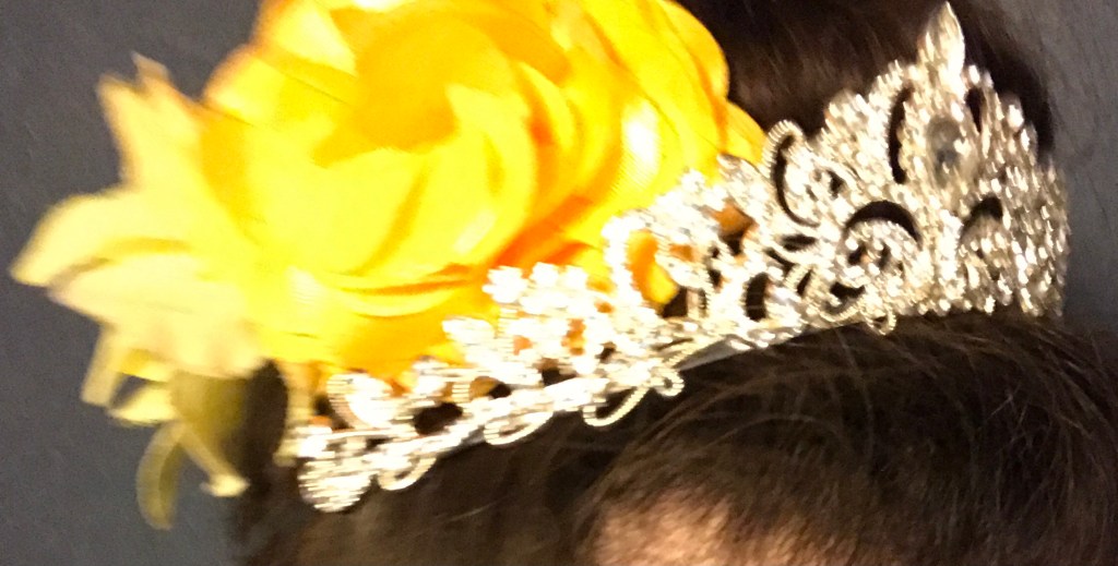 And finally, for the Belle Half: I wore my Reading Rainbow t-shirt. (Because: 1. It was yellow. and 2. I figure Belle would be a big supporter of a children’s reading program.) I put my hair in a bun, added two different yellow flowers, and of course the tiara (which I almost didn’t wear… but did at the last minute, and I’m glad for it now!). I also found this preserved-in-resin red flower bracelet… which felt very red-rose-esque.